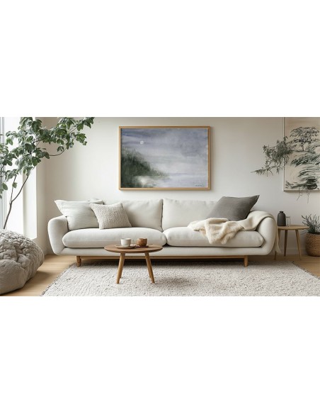 La ausencia de detalles excesivos invita al espectador a imaginar y a conectar con sus propias emociones de paz, tranquilidad, melancolía o introspección.Su belleza atemporal y su versatilidad convierten el cuadro “Noche de Luna” en una pieza ideal para decorar cualquier espacio moderno.