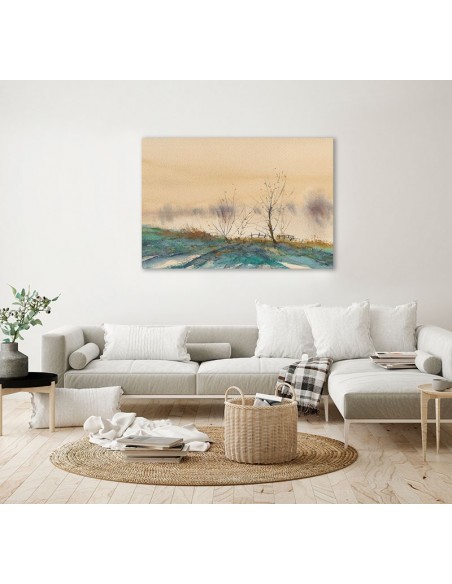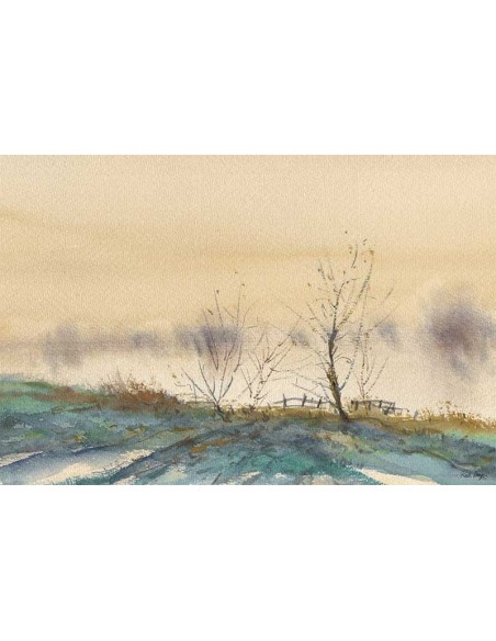 Paisaje de campo varios tonos de líneas sencillas y plácidas. Reproducción de la Obra de Ruth Design