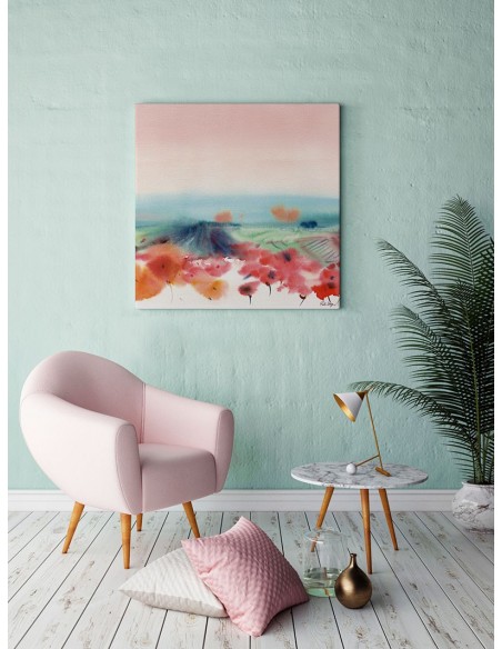 Paisaje idílico de campo en tono coral, reproducción de la obra de Ruth Design