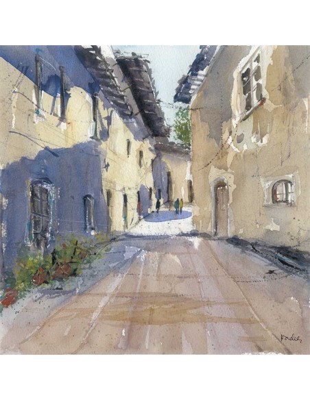 Paisaje de calle rural. Reproducción de la obra original de Nacha Cassinello