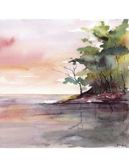 Paisaje de puesta de sol, reproducción de la obra de Nacha Cassinello