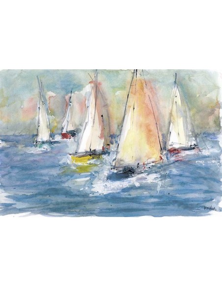 Paisaje de regatas en varios tonos. Reproducción de la Obra de Nacha Cassinello