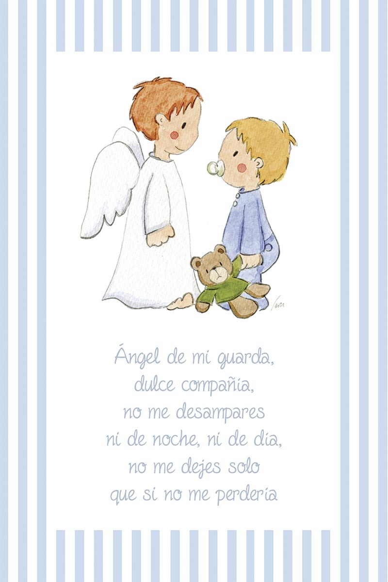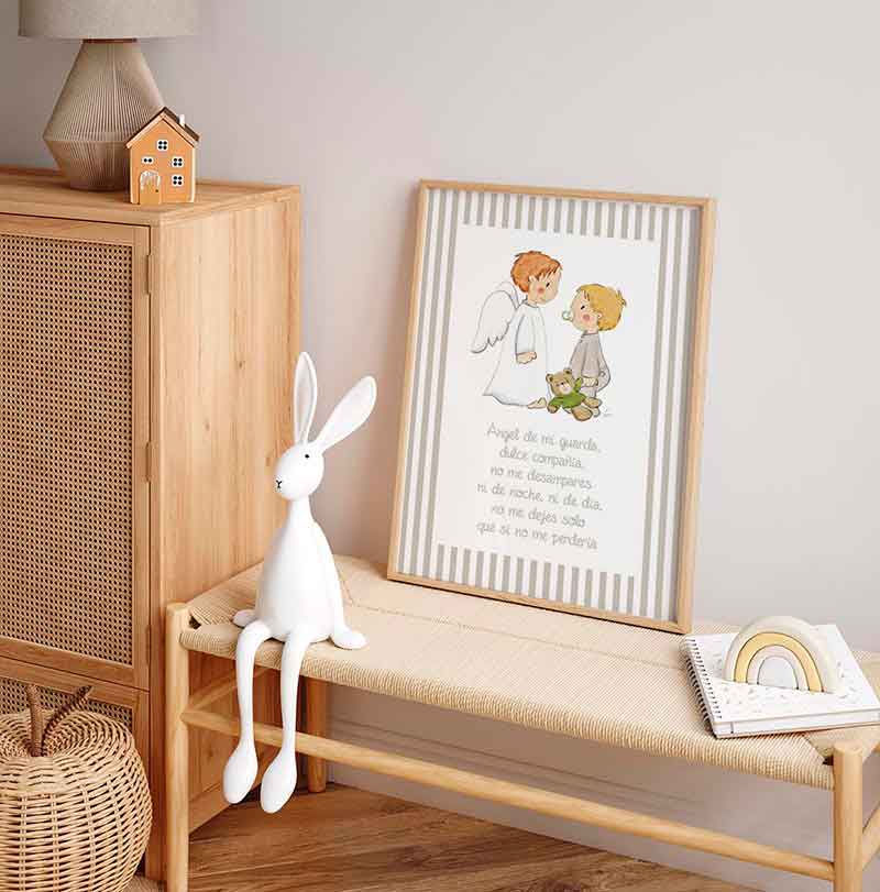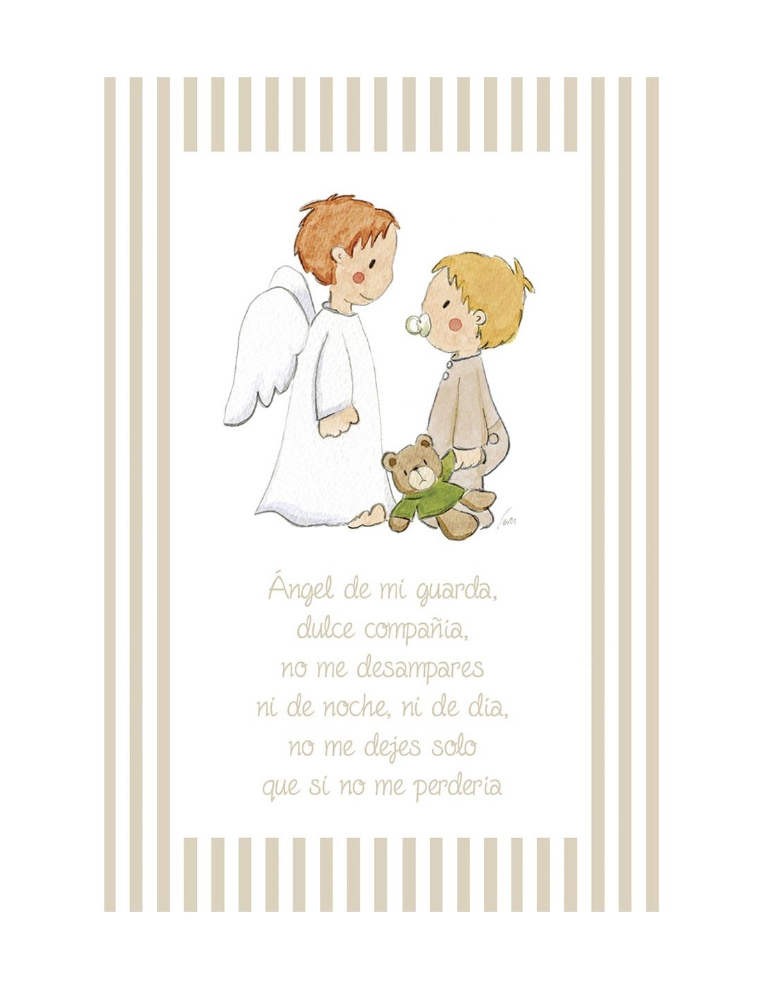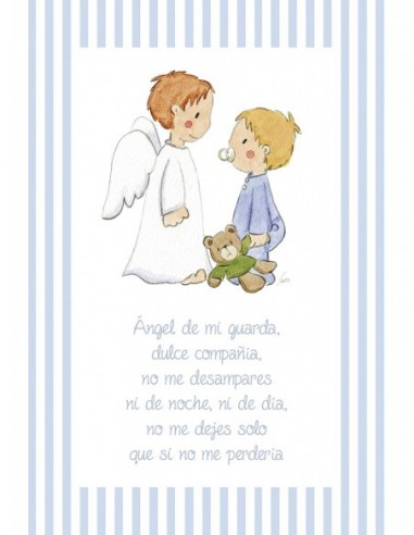 Cuadro de oración “Angel de la guarda” con greca de rayas. Disponible en varios colores