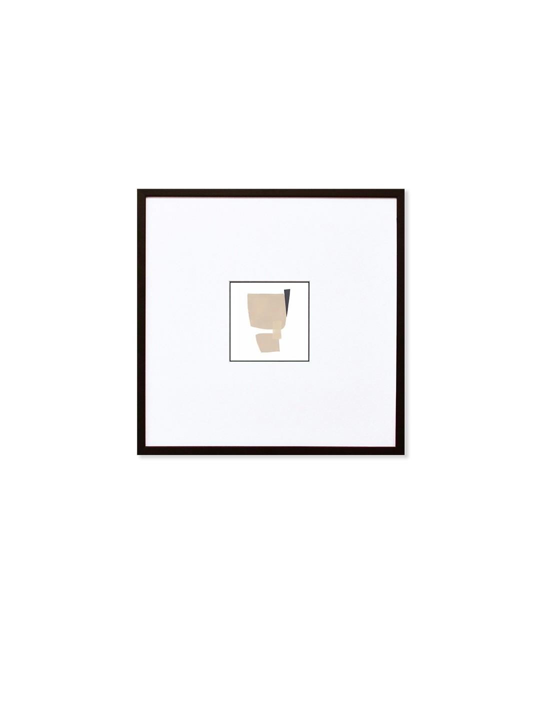 Cuadro con maxipaspartú de 5,5 cm de ancho, ensalzando la obra "Conjunto III" reproducción del diseño original de Marta Castet Bellocq. Diseño compuesto de manchas con distintasformas en tonos beige.